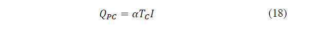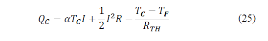 There are several effects that occur within a Peltier cell, being able to enunciate the Peltier, Thomson and Joule effects, as denoted in the study by Patterson [30] and Chen, Yan and Wu [31]. In a given temperature range, the heat flow produced by the circulation of the electric current with variation of temperature, that is, the Thomson effect, can be neglected. Taking into account the above, when applying a potential difference on the cell, a heat transfer per unit time on the hot face will be produced equal to eq. (18):