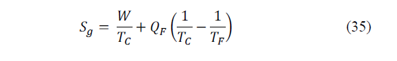 Additionally, the entropy generation rate due to thermodynamic losses in the refrigerating device can be calculated by means of the following entropy balance considering the temperatures of the extremes (eq. 35):