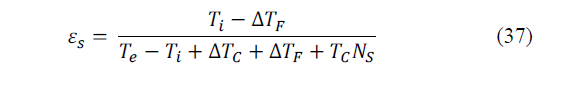 We should note that ε s →ε ii , N S →0 and ε s →ε c and both, ∆T F and ∆T C tend to zero. According to the above it can be inferred that the temperature differences in the hot and cold ends of a refrigerator and the internal limit of the entropy generation rate, cause a deviation between εs and its ideal counterpart, ε c thus reducing the efficiency of the system.
