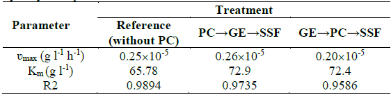 3.2. Estimated kinetic parameters for bioethanol production from potato starch