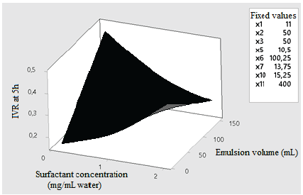 Figure 6: Effect of the relationship between surfactant concentration - emulsion volume over the five-hour IVR