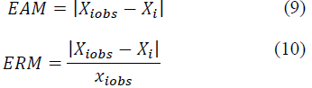 Where, X iobs is the experimental value for i, and x i is the value predicted by the model.