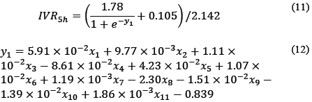 The mathematical correlation between the factors and the IVR to 5h can be represented by the algebraic system eqs. (11, 12).