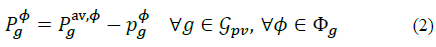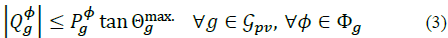Where P av g . is the total available irradiance, p g is the total power being curtailed and P φ g, P φ g ≥0. Power curtailment is mainly used to avoid voltage limit violation. If there is no PV reactive power compensation, Q φ g =0. Otherwise, reactive power is limited by: