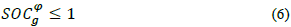 Where SOC is the state of charge of the storage system, and SOCфg,1= SOCфg,τ =SOCmin;Eg is the maximum storage energy, and Δt = 1 hour. Additionally, each storage system has the following constraints for all g Є gES and for all ф Є Фg