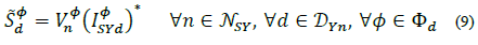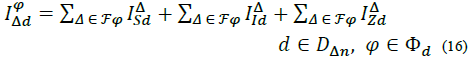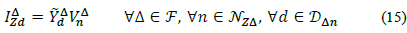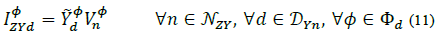 Where, F φ is the set of delta branches connected to phase φ, e.g., for φ =a = a, F φ = {(a, b), (a, c)}. Adding up everything, the total current demanded by a load d at phase ф of node n is: