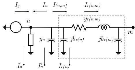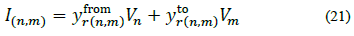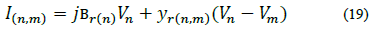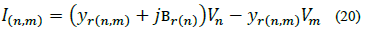 Where jbr(n)=yr(n) is the shunt susceptance of branch r at node n, yr(n,m) is the serial admittance of branch r, Ir(n) is the current flowing through yr(n) ,Ir(n,m) is the current flowing from node n to node m through yr(n,m), Vn is the voltage at node n and Vm is the voltage at node m -Note that yr(n,m) = yr(n,m) and yr(n,m)= yr(n,m). From eq. (20) and defining and