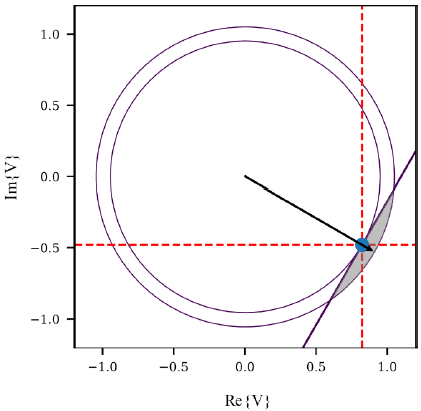 Where is the phase Ф angle of the voltage at node n. In Fig. 5 there is an example of the new feasible region for a voltage that is on the fourth quadrant in the complex plane.