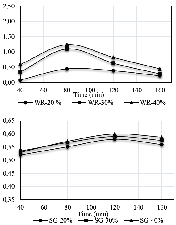 Figure 2: Weight reduction (WR) and solid gain (SG) kinetics reported for S1.