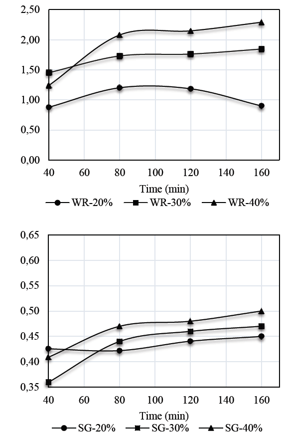 Figure 3: Weight reduction (WR) and solid gain (SG) kinetics reported for S2.