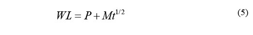 Where D is the diffusion coefficient, t stands for time (min), WL ∞ stands for water loss at the time of reaching equilibrium, and WL is the loss of water over a specific period of time t. Therefore, the above equation can be transcribed as Eq. (5).
