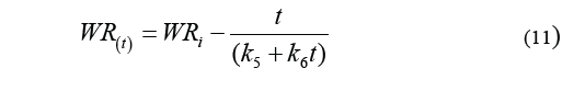 Eq. (8) together with Eq. (5) (which is used to calculate water loss) will result in Eq. (7) (WL values) which in turn leads to the Eq. (9).