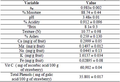 Table 1: Parameters of physicochemical characterization of fresh strawberry