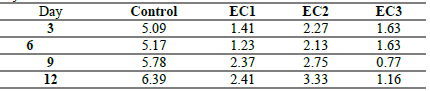 Table 3: Color change (ΔE) of the EC with respect to the control during storage days