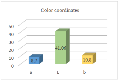 Fig. 1 shows that strawberry has positive values of a* at 8.7, indicating a hue close to red and b* at 10.8 inclined to a yellow hue. These values agree with their reddish hue, besides being an indicator of their maturation. These reddish colors are observed due to the presence of vegetable pigments (flavonoids), known as anthocyanins, responsible for antioxidant properties. The L* parameter indicates the brightness, this value is associated with the brightness present in the epidermis of the fruits.