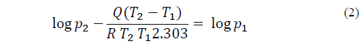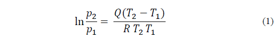 Standard physics [2,3] are applied throughout to interpret the experimental results. The three variables of temperature, barometric pressure and relative humidity are used to calculate the partial pressure of water vapour (ppwv) using the exponential equation of Clausius-Clapeyron, [2] p.165, eq. (1)-(2). Since at an atmospheric pressure of 1013.25 hPa, p 2, water boils at 373 K, represented as T 2,it is possible to substitute for p 2 and T 2. The saturated partial pressure of water, p 1.at each temperature, T 1 can be determined as follows: