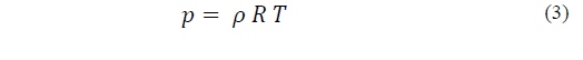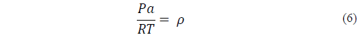The air density ρ, in kgm-3 is obtained eq. (6), using the ideal gas equation, see eq. (3), where the barometric pressure is given in pascals (Pa):