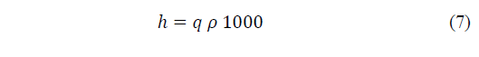 The humidity, h, of moist air, in grams per cubic metre will be obtained, eq. (7), from the proportion of humidity, q, in a given air density ρ, as from eq. (6):