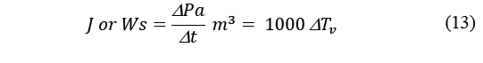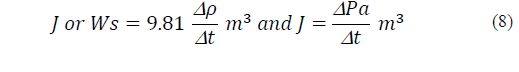 Eq. (8) (mass*acceleration) provides the kinetic energy values (Ws) for changes in the partial pressure of water vapour,