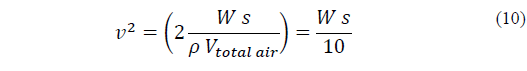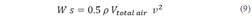 Transforming Eq. (9) into Eq. (10) provides the means to convert the kinetic energy (Ws) from the rate of change of air density and of partial pressure into average airflow velocity in the entire structure (mass of air 20 kg):