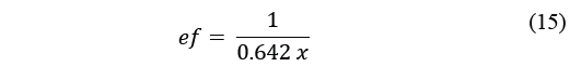 In effect, the total condensate, c, as measured from the precipitate, multiplied by x, will be equal to the aggregate of water vapour condensed, h x (gm-3), the factor, x, being the number of times the actual block size divides into 1 m3. The surface area of the coils is 0.642 m2 and taking into consideration that the parcel volume is calculated as if the total surface area were squashed flat into a plane, the factor x will be 1/0.642 ef , where ef is the average effective layer, as if it were jutting upwards from that plane, eq. (15):