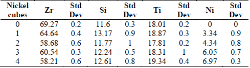 Table 1: Chemical composition for Ti6Al4V alloy depending on the nickel addition.