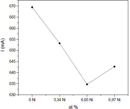 In general, the corrosion current density in the deposited coating takes lower values with an increase in nickel. The Ni inhibits corrosion and promotes the growth of a less crystalline material; that is, it reduces the paths or crystalline defects so that the solution cannot chemically interact with the substrate, thus delaying the degradation of the coating-substrate system.