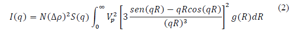 Assuming spherical particles with a size distribution g(R) the scattered intensity, including a structure factor S(q) can be written as expressed in eq. (2):