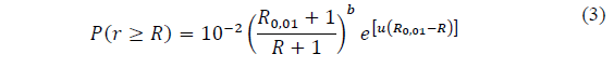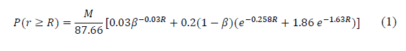 Eq. (3)-(5), show that the rainfall rate probability, P(r ≥ R), in refined Moupfouma-Martin model also depends on rain rate, R 0.01 , exceeded at 0.01% of time in an average year. This can be estimated using the Chebil-Rahman model [20], based on a power law for rain rate calculation with a 1-min integration time by using only annual cumulative average precipitation M, in conjunction with regression parameters, α and β, as follows