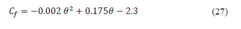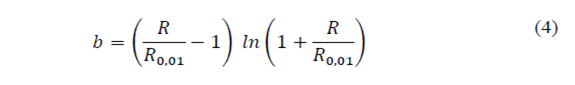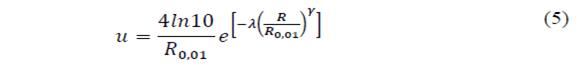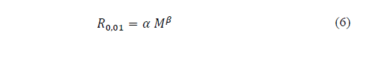 where ( and ( are regression parameters equals to 12.2903 and 0.2973, respectively.