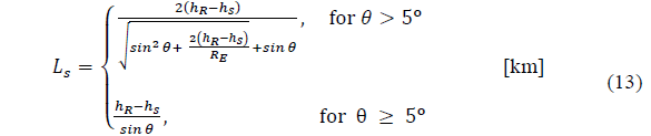 The rain attenuation estimation in satellite communication systems is based on the link geometry illustrated in Fig. 11, whose parameters have been defined in section 3.