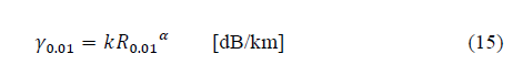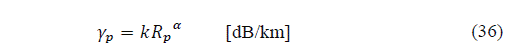 where k and α are the regression coefficients that depend on the operation frequency and wave polarization and are given by Recommendation ITU-R P.838-3 [26].