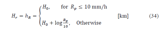 In Eq. (38), the rainfall decay parameter (, depends on rainfall rate R p and is obtained from [5].
