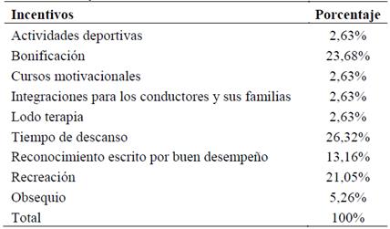 Tabla 4: Incentivos para motivar a los conductores a realizar conductas seguras durante su trabajo