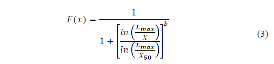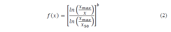 Taking into consideration that f(xmax) = 0 and f(x50) =1, the function is fixed at xmax and x50.