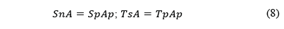 Figura 14: Esfuerzos en un pilar en veta con buzamiento, Sn, Sp, Ts, Tp, A, Ap, son respectivamente el esfuerzo normal antes de explotación, esfuerzo medio después de explotación, esfuerzo cortante antes del minado, esfuerzo cortante medio después del minado, área tributaria y área del pilar. Estos esfuerzos actúan en la base y parte superior del pilar.