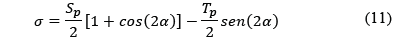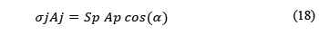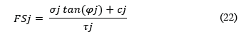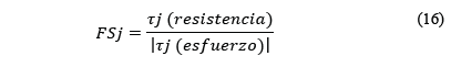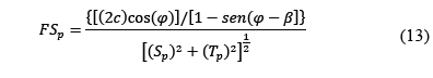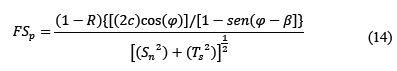 α es el ángulo entre la dirección de Sp y la normal a la superficie inclinada considerada. De acuerdo con [14] el factor de seguridad por cortante según el criterio de Mohr-Coulomb es: