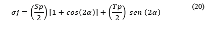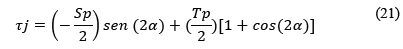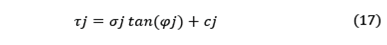 Donde el sufijo j se refiere a las discontinuidades, con propiedades consideradas conocidas. Se necesita un nuevo análisis para determinar los esfuerzos actuantes en la discontinuidad. En la Fig. 15 se muestra un esquema de la situación.