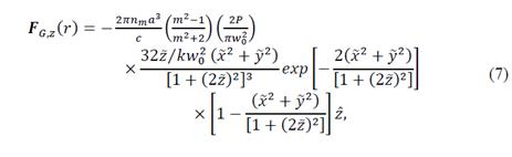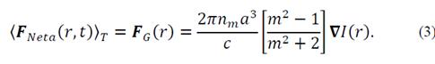 Where C is the light velocity of vacuum and ∇I(r) is the Gradient of the intensity light beam; thus, the equation (3) is called Gradient Force.