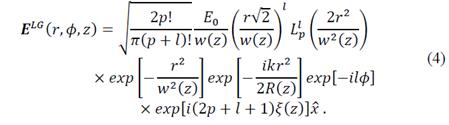 If is have in account the description of the Laguerre beams [14-15], and considering the parameters beam, is possible writing the linearly polarized electric field in direction