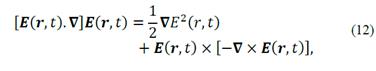 Substituting the equation (1) in (2), applying vector identities and because of the electric and magnetic field changes rapidly in time, the temporary average of them is calculated (see Appendix), obtaining: