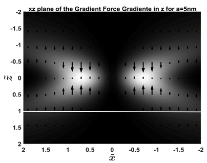 Figure 4. : Front plane XZ of the longitudinal component z of Gradient force for a dielectric sphere of radius 5nm