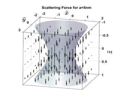 Taking the form of intensity of the capture beam TEM*01 and cross section of the scattering, equation (9); is possible writing of the Scattering force in function of normalized coordinates as: