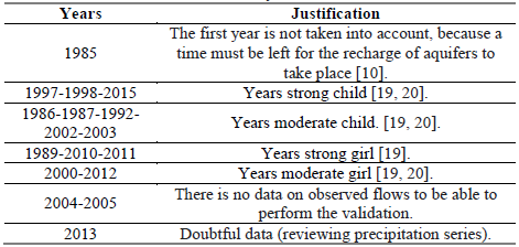 Due to the climatic variability it was not possible to calibrate and validate the model using the whole time period of simulated and observed flows (1985-2015), so it was necessary to exclude the years that presented climatological phenomena boy and girl (Table 1).