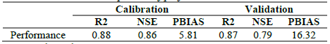In Table 4 it can be seen that in the validation an adjustment was obtained between the observed and simulated flow rates less satisfactory than that obtained in the calibration. But according to the statistical performance for the coefficients R2 and NSE is very good, and for PBIAS it is reduced to satisfactory.