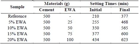 Table 4: Set times for the pastes containing EWA.