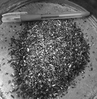 Figure 3: Particles of EWA retained in the sieving process, where the presence of charcoal can be noted.