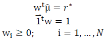 es el estimador de la matriz de varianzas y covarianzas, N es el número de activos que conforman el portafolio, r* es el rendimiento esperado del portafolio y γ indica el grado de aversión al riesgo del inversionista.