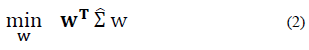 El modelo de mínima varianza busca minimizar la varianza del portafolio de inversión, siempre y cuando la totalidad del capital de inversión sea asignado en los activos que lo conforman [4,5]. El problema de optimización de mínima varianza es representado mediante en la ec. (2).