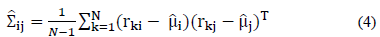 Habitualmente, la matriz de covarianza se calcula mediante la ec. 4, Donde N indica la cantidad de observaciones de cada variable, r